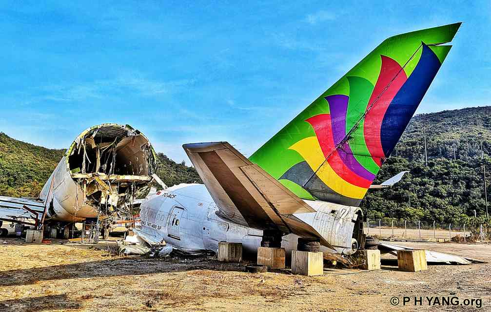 The Boeing 747-481 aircraft has broken in half and has been moved off-site