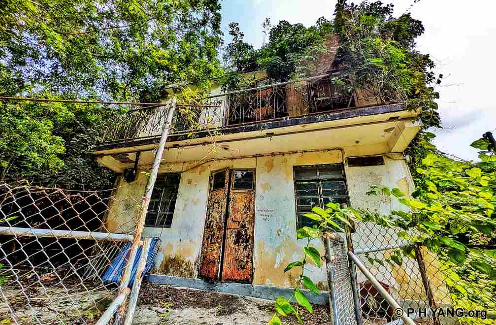 vine growth. The building and facilities are in advanced dilapidated condition.
