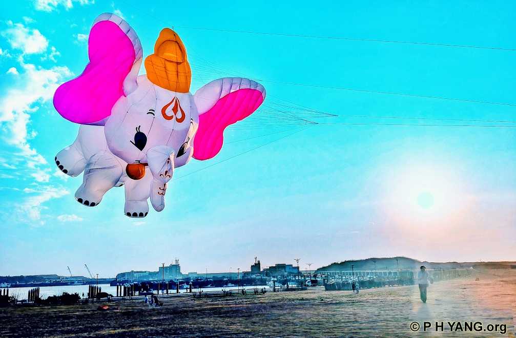 A giant flying baby elephant kite rings in the Lunar New Year of the Horse,
