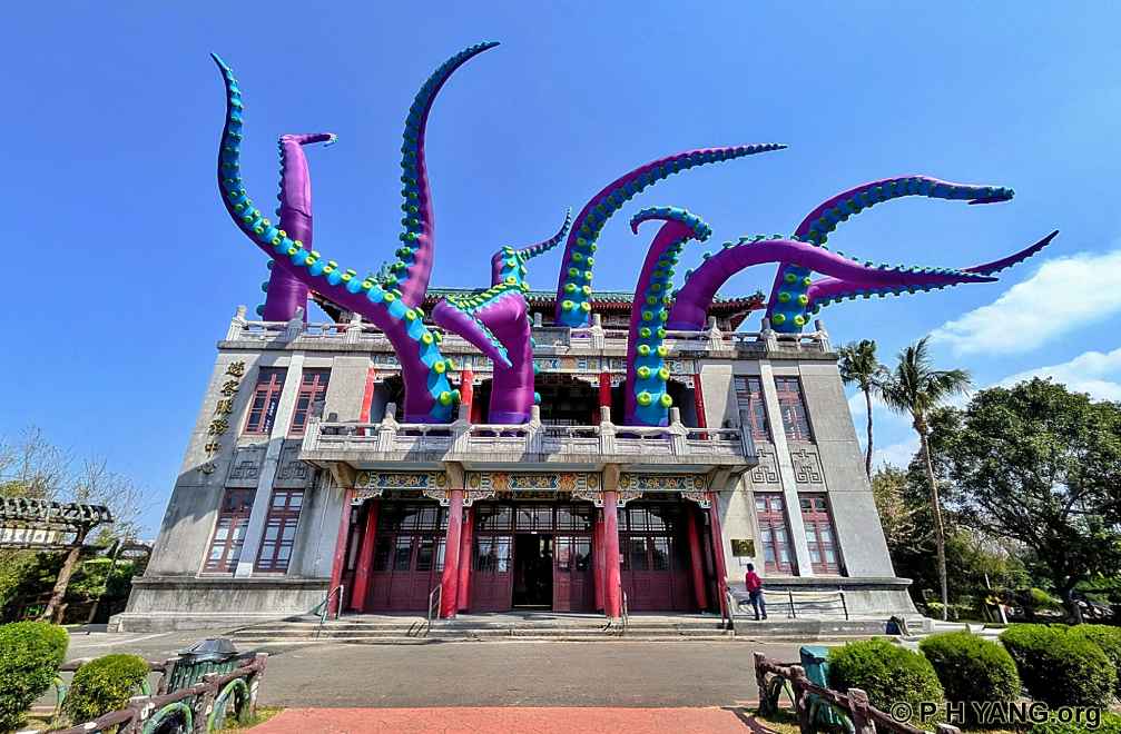 “Octopus Attack” burst from the facade of Chengcing Lake Visitor Centre,