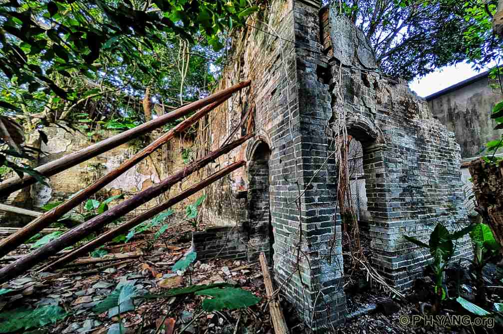 The building was constructed of green bricks. It is now in a sad state of disrepair