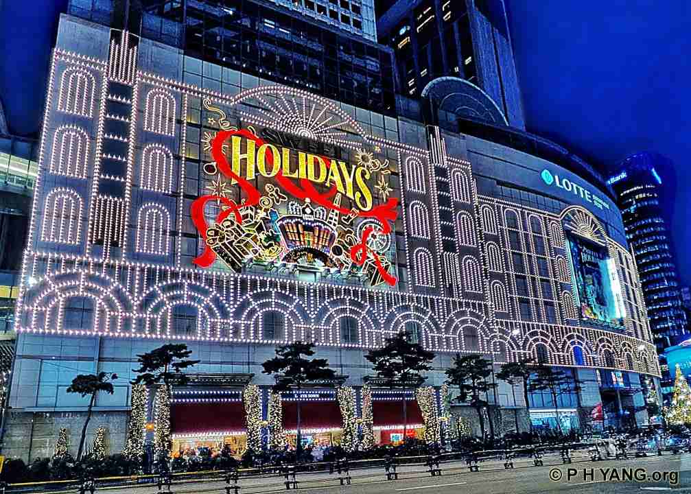30,000 LED lights lit up Lotte Department Store for the Christmas season