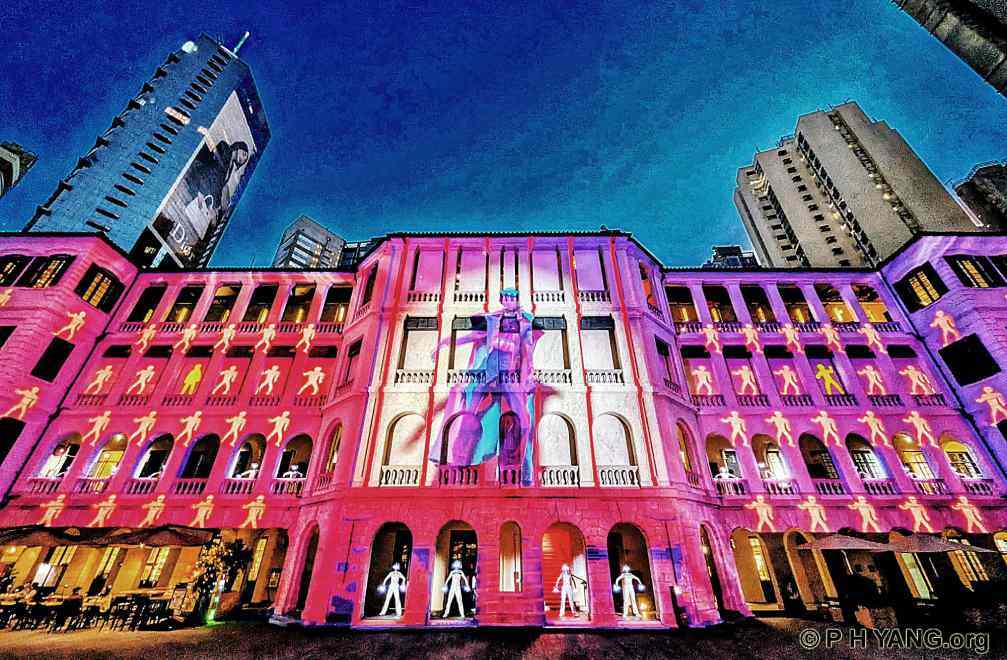 the historic facades of Tai Kwun through high-resolution light projection. It