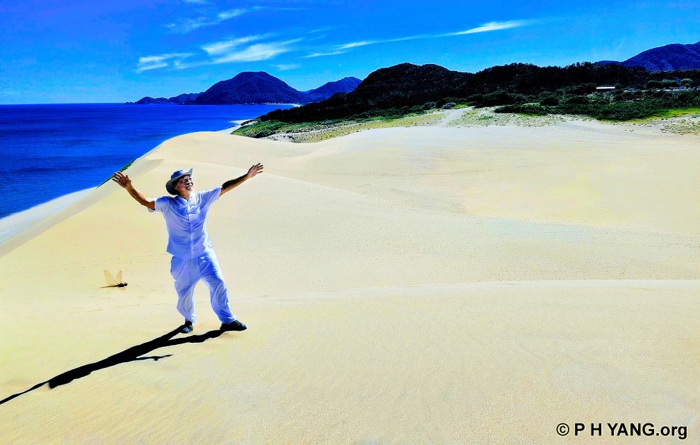 PH with a dragonfly at the Tottori Sand Dunes, located outside the city