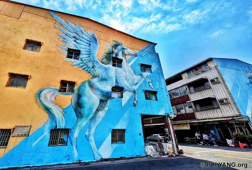 Giant pegasus (a winged horse in Greek mythology) mural at Zhengyi