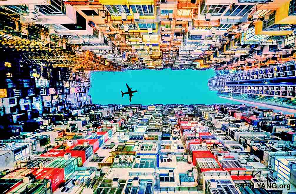 A plane flies over Yick Cheong Building in Quarry Bay. It is nicknamed