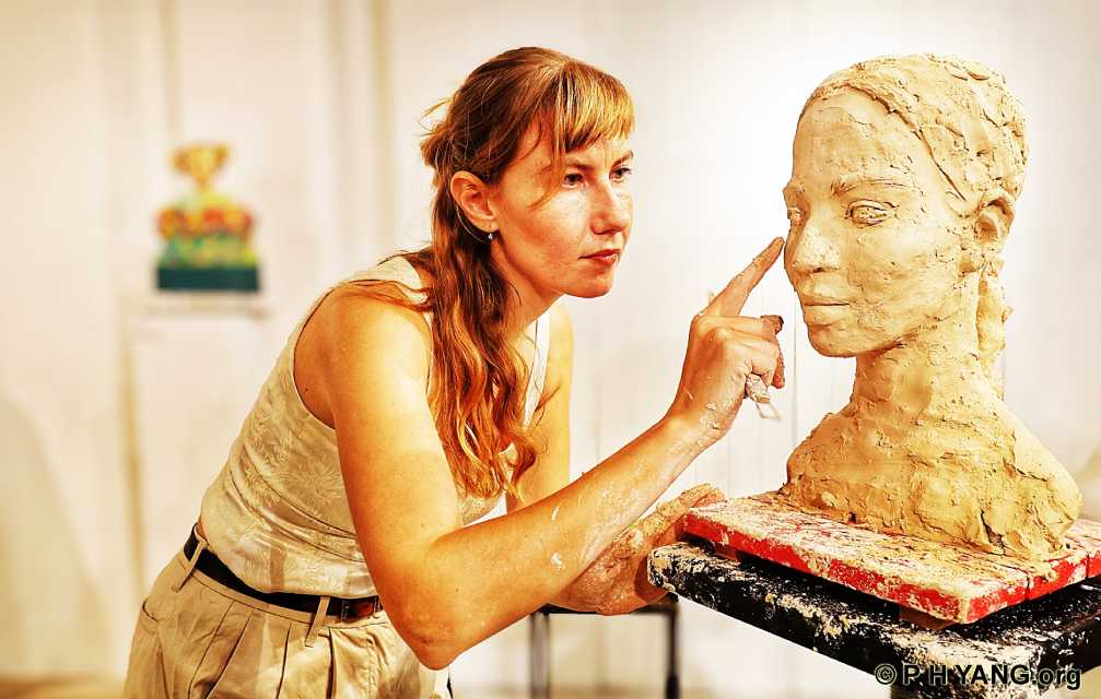 Talented sculptor, Anastasiia Fabritskai, creates a sculpture from a live model